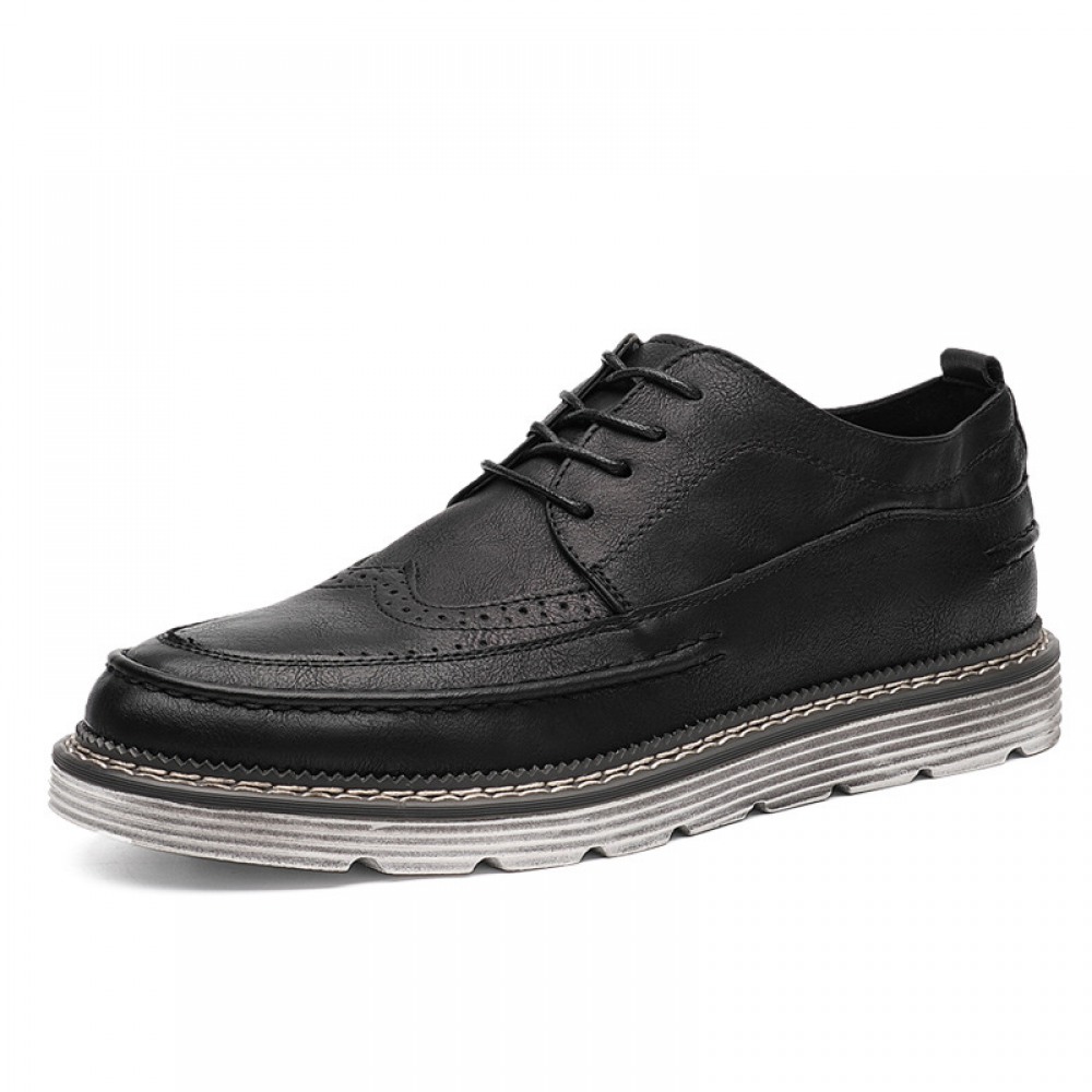 Black Men's Trend Casual Leather Breathable Shoes