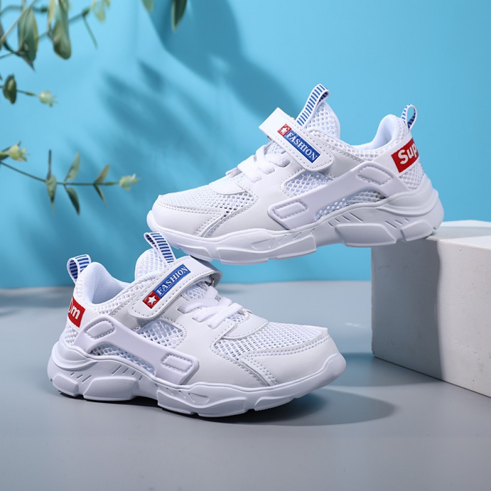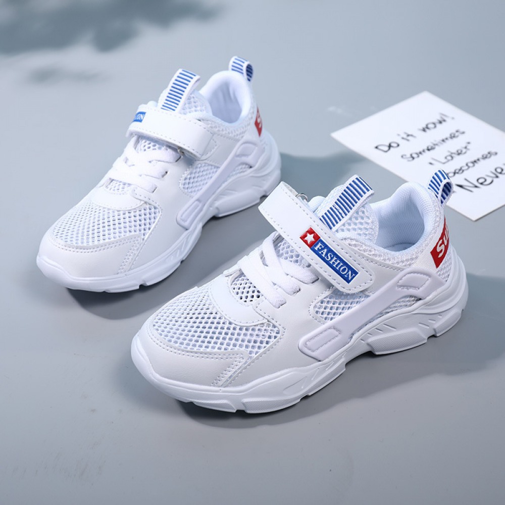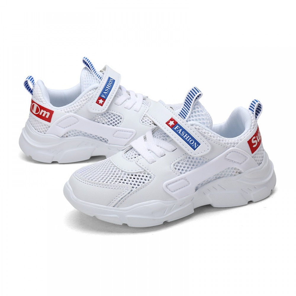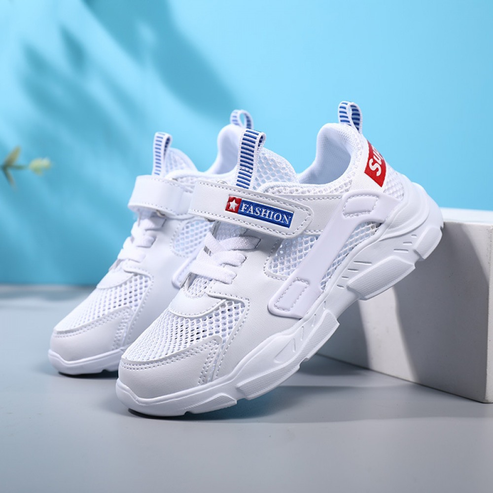 Children's White Summer New Soft Sole Single-Layer Mesh Panel Casual Shoes