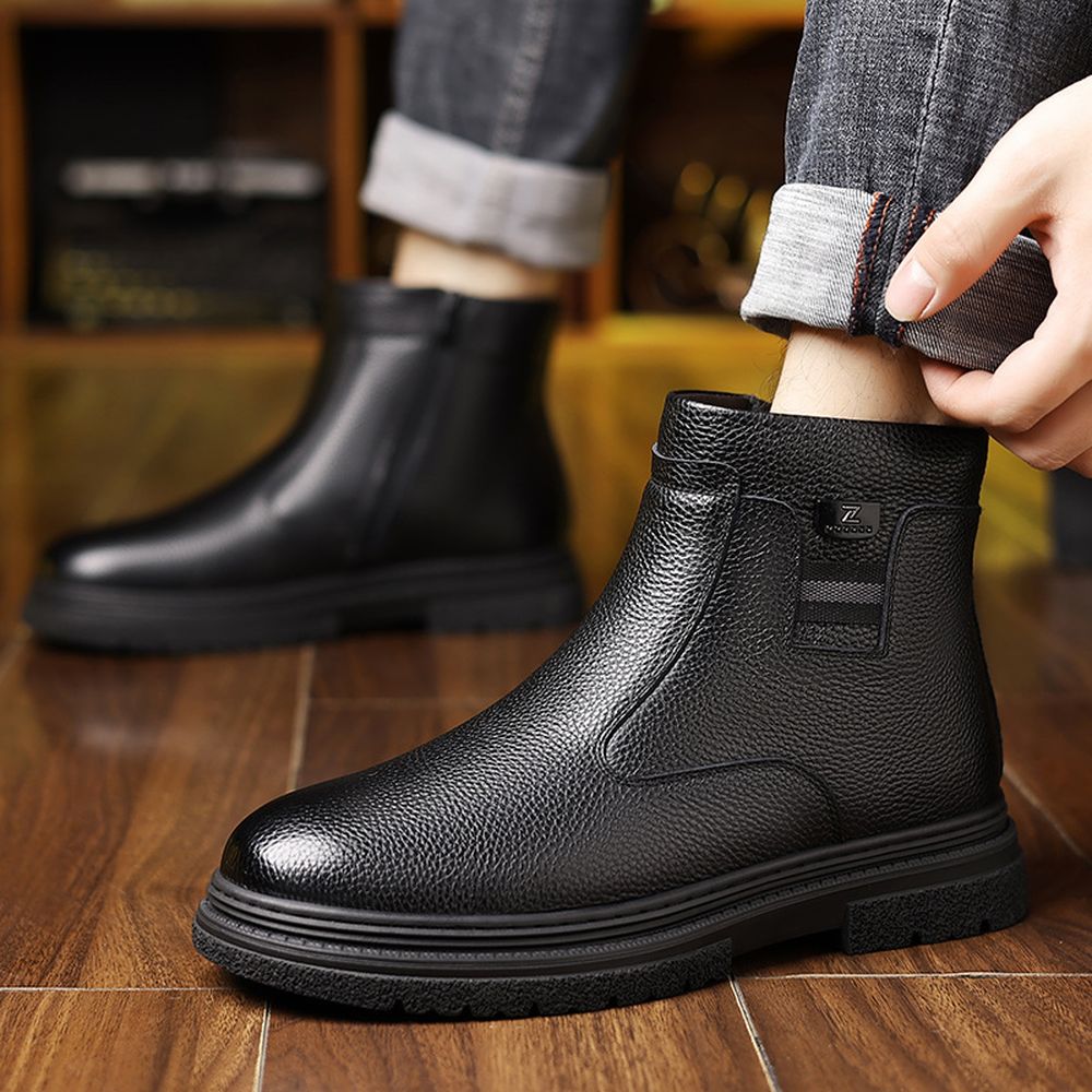 Men's Autumn New Fashion Casual Add Velvet Warm Leather High-Top Martin Boots