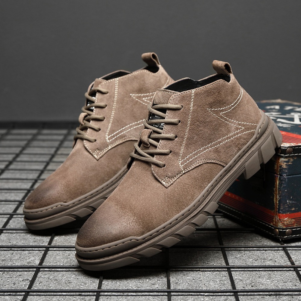Men's New British Short Mid-Cut Boots Trendy High-Top Military Martin Boots