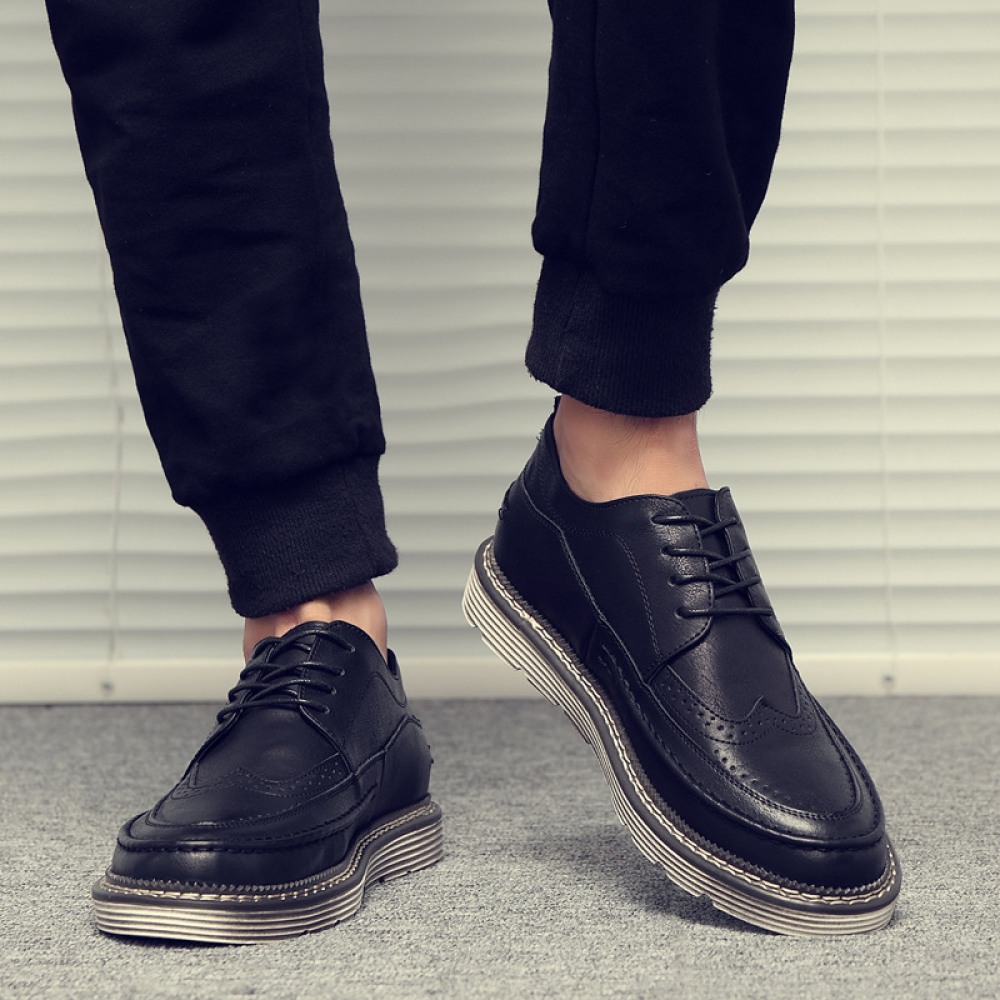Black Men's Trend Casual Leather Breathable Shoes