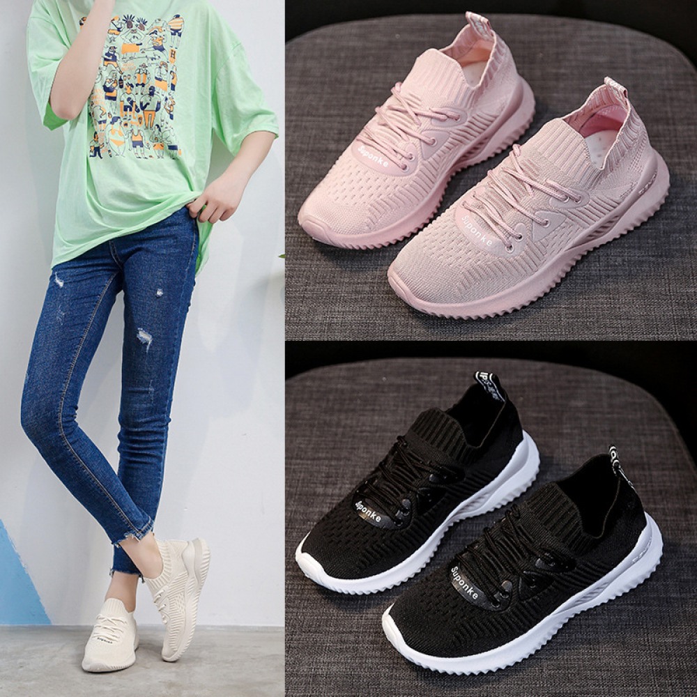 Spring New Women's Flying Woven Fitness Sports Shoes Breathable Running Board Shoes