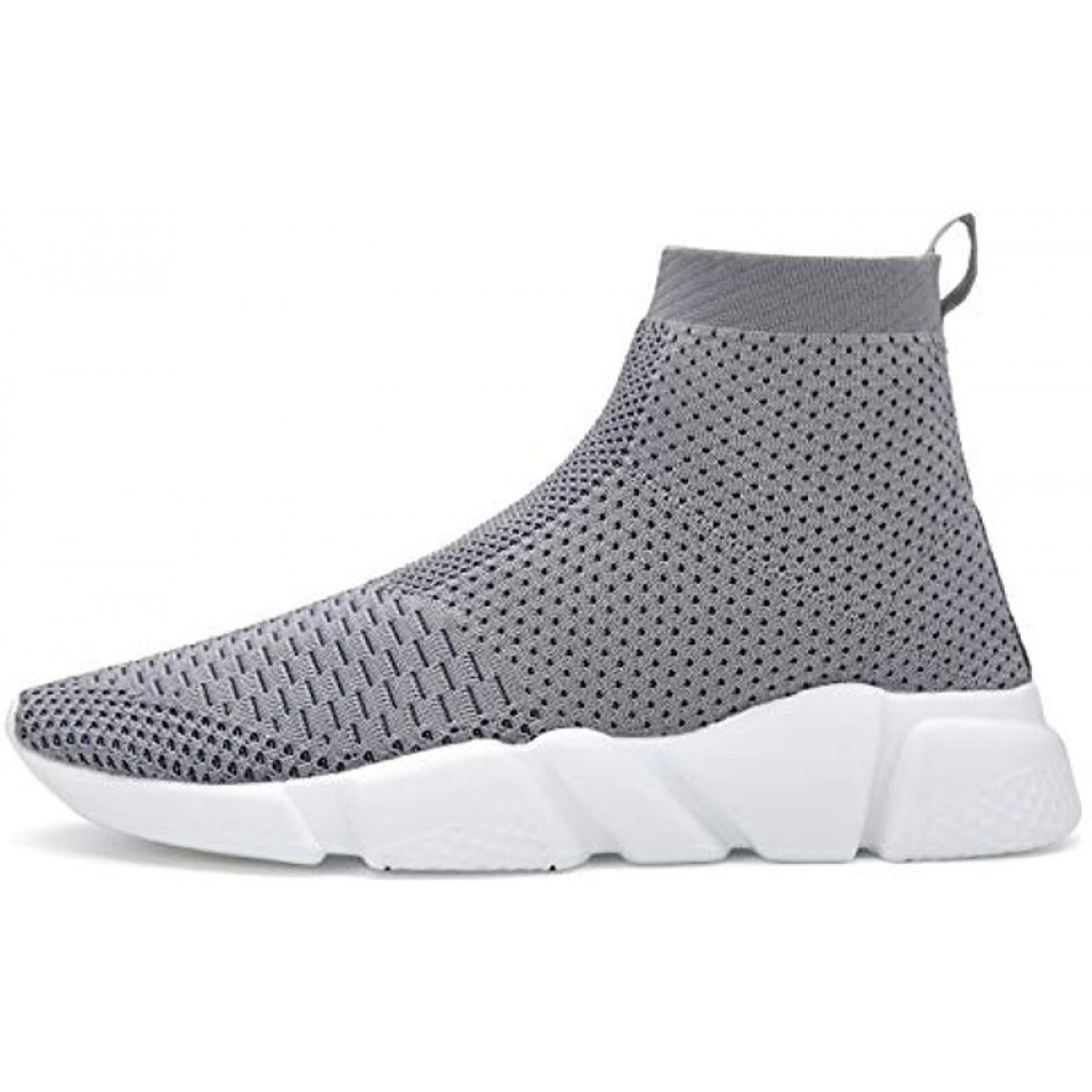Men's Running Shoes Breathable Knit Slip On Sneakers Lightweight Athletic Casual Sports Shoes Grey